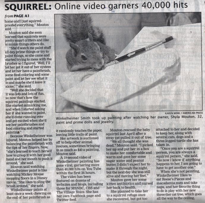 Winkelhimer Smith in the Lake Charles American Press paper.Thanks to Karen Wink for taking such pretty photos of my baby squirrel girl! http://www.facebook.com/americanpress