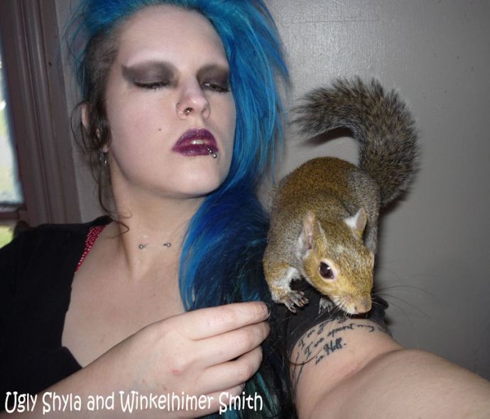 My squirrel Winkelhimersmith can be a total naughty scamp sometimes.But she can also be awfully sweet and carrying.In the early hours of the morning my kidney stone pain woke me up.It was so sharp and stabbing I was groaning and writing around in bed ect in pain.I wasn’t being loud but I guess Winkelhimer senses when I’m sick or really sad.At one point on like my 3 trip to soak in the bathtub I fl
